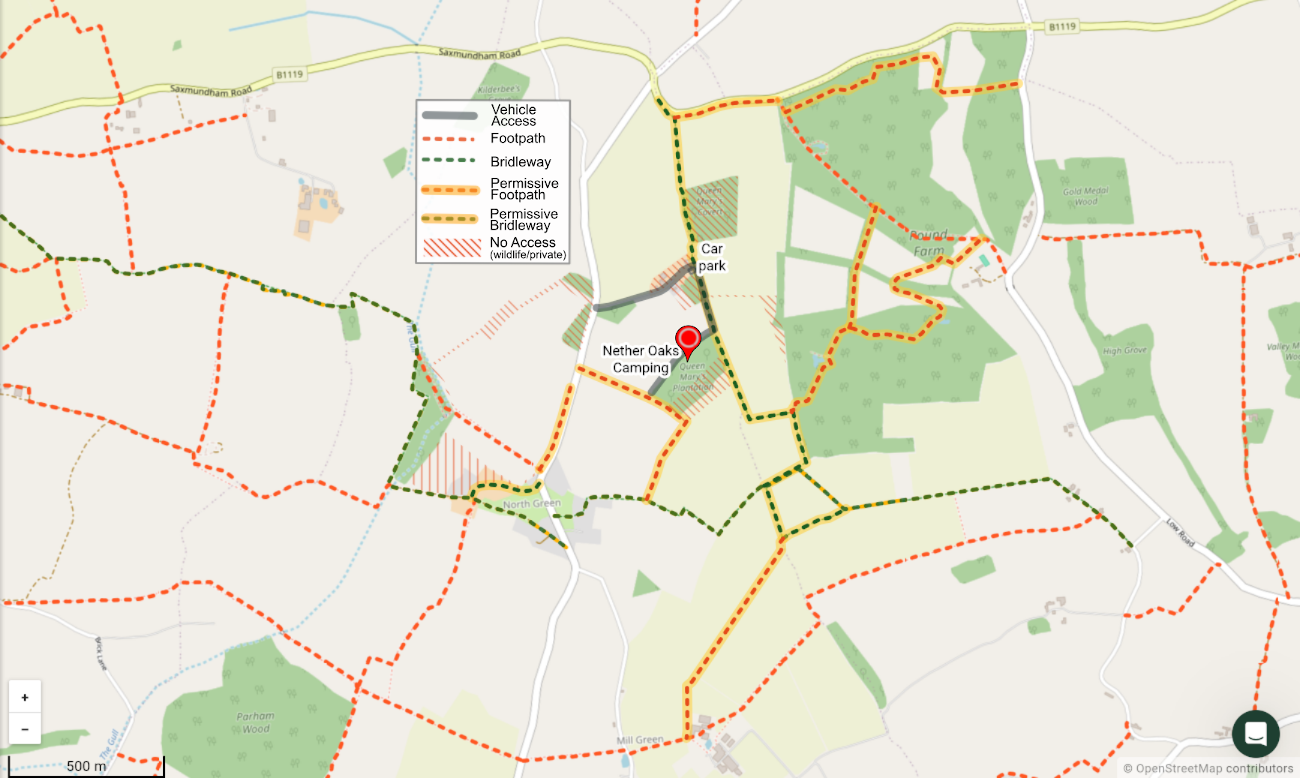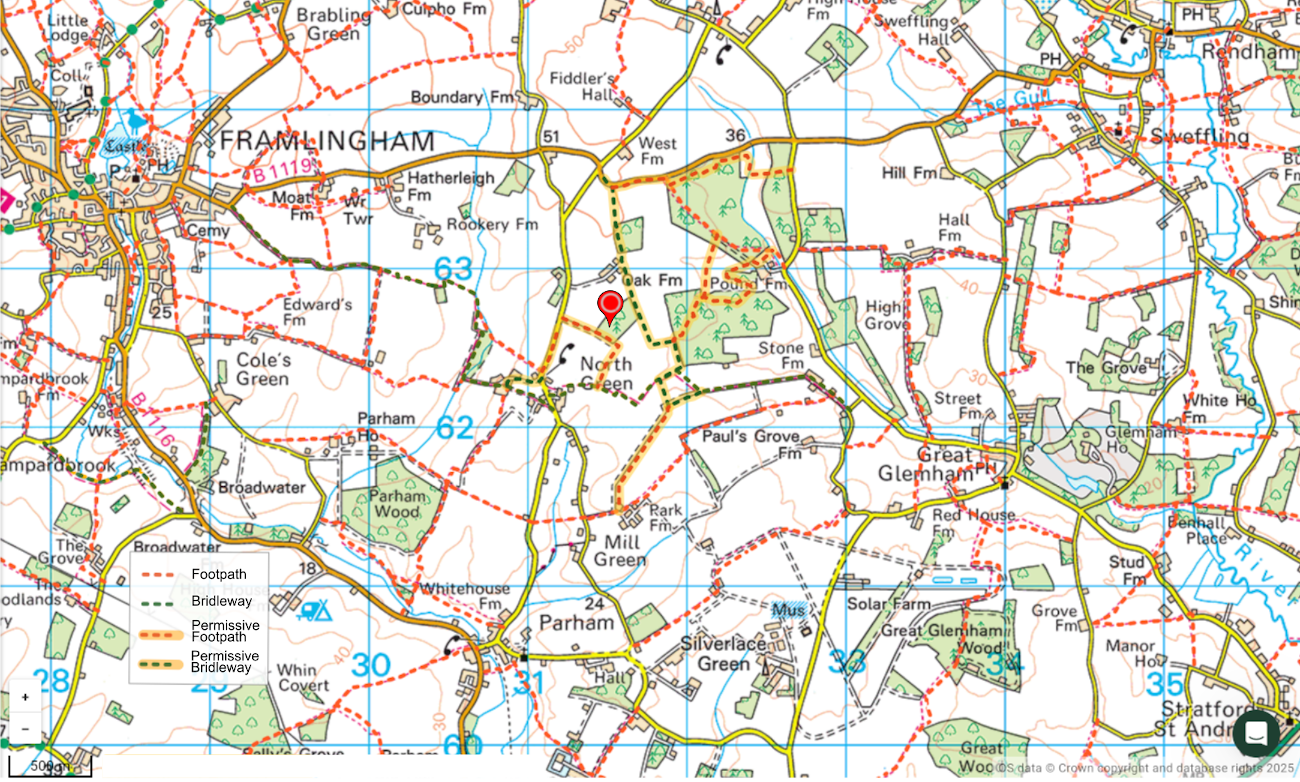 Queen Mary's Lane (adjacent)We maintain the length of Queen Mary's Lane through our farm as a permissive bridleway, enabling you to cycle off-road or walk to Framlingham (to the west) or to Great Glemham (to the east). Click or tap on the old map to see it full-sized and to find out more about the rich history of Queen Mary's Lane. |